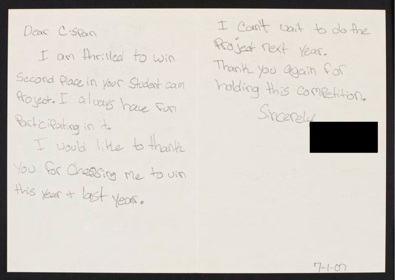 Letter to C-SPAN, 2007-07-01