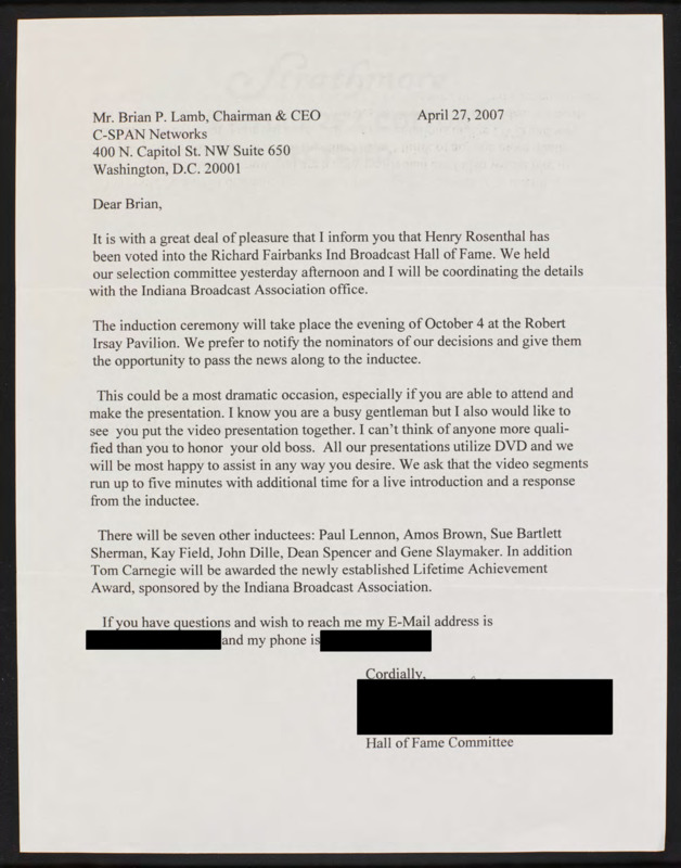 Requests that C-SPAN broadcast an awards ceremony for the Richard Fairbanks Ind Broadcast Hall of Fame.