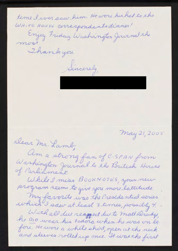 States support for C-SPAN and offers commentary on many C-SPAN series, as well as one commentator's fedora.