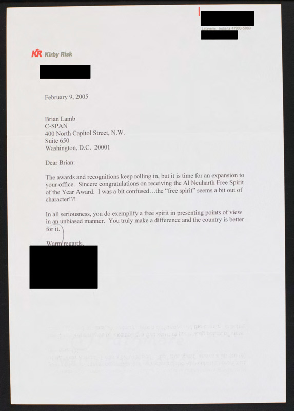 Congratulates Brian Lamb on winning the Al Neuharth Free Spirit of the Year Award.
