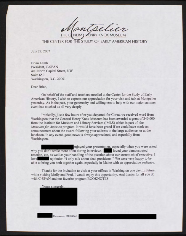 Letter to C-SPAN, 2007-07-27; 04861
