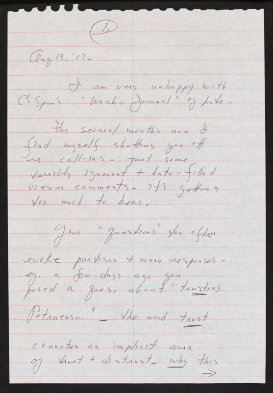 States unhappiness with Washington Journal and asks C-SPAN to stop partisan bullying on air.