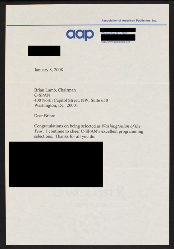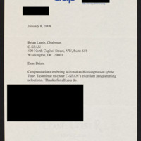 Letter to C-SPAN, 2008-01-08; 20001