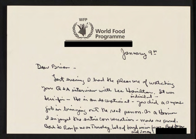 - Praises an interview with Lee Hamilton.
