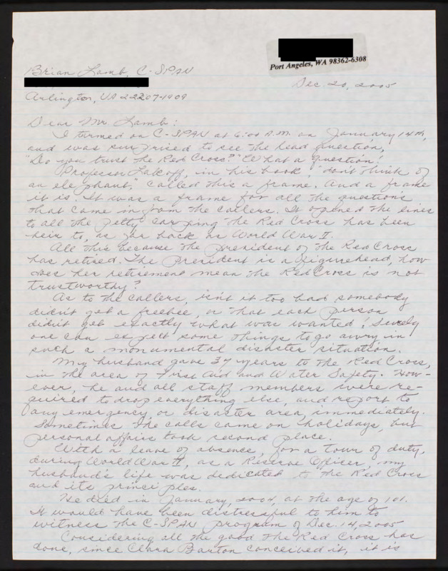 Letter to C-SPAN, 2005-12-20; 98362