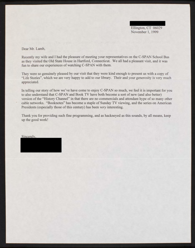 Letter to C-SPAN, 1999-11-01; 06029