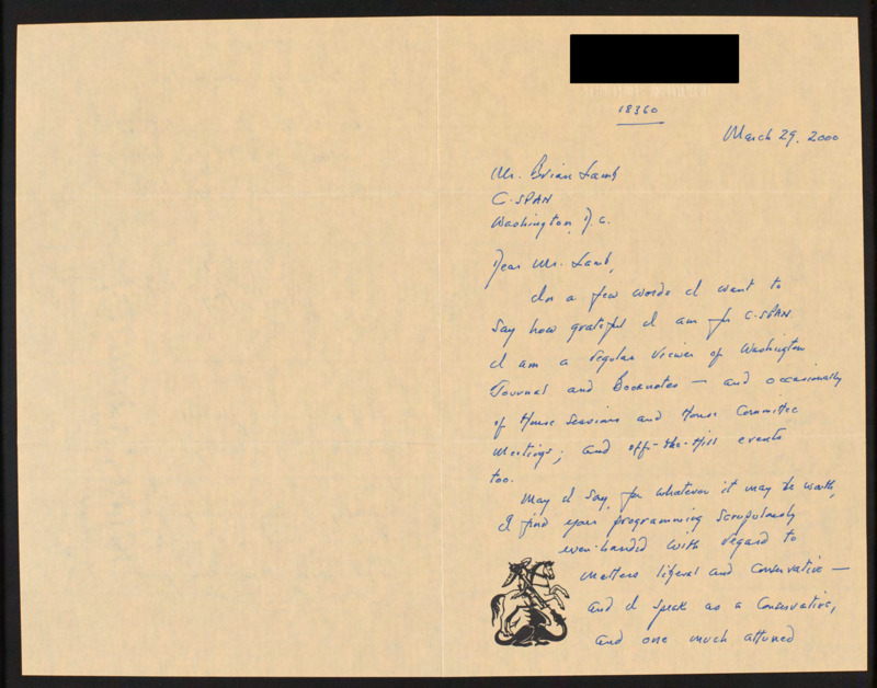 Letter to C-SPAN, 2000-03-29; 18360