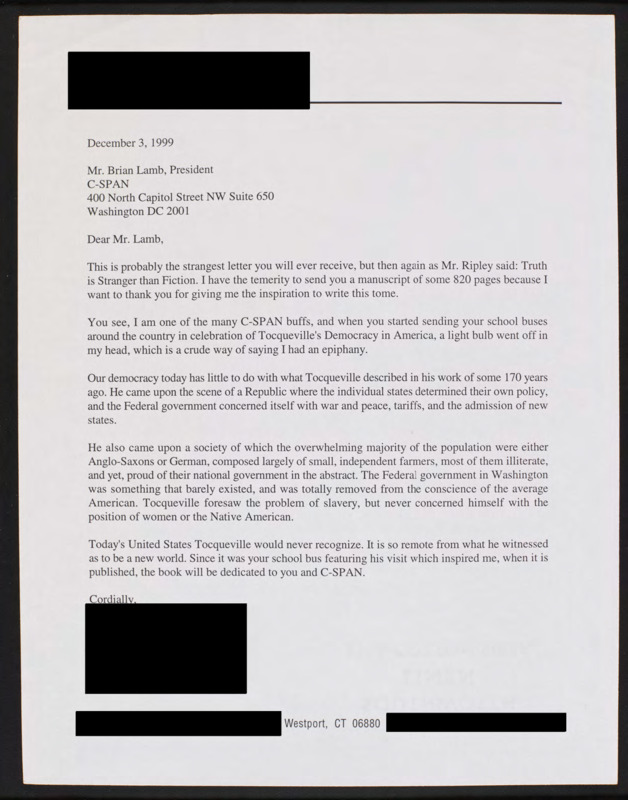 Letter to C-SPAN, 1999-12-03; 06880