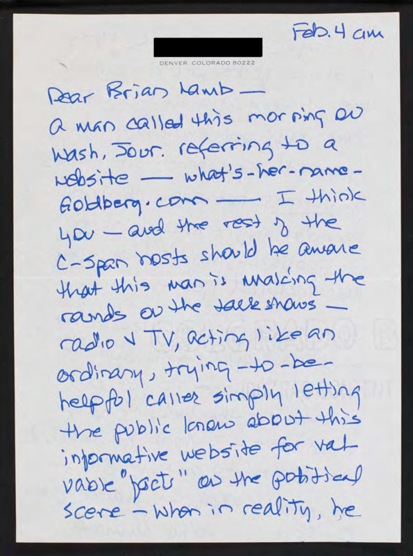 Letter to C-SPAN, 2000-02-04; 80222