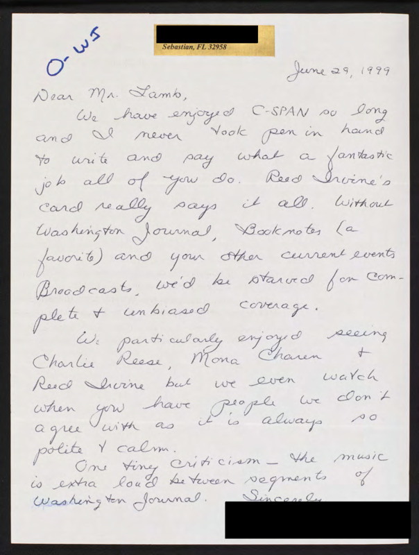 Letter to C-SPAN, 1999-06-29; 32958