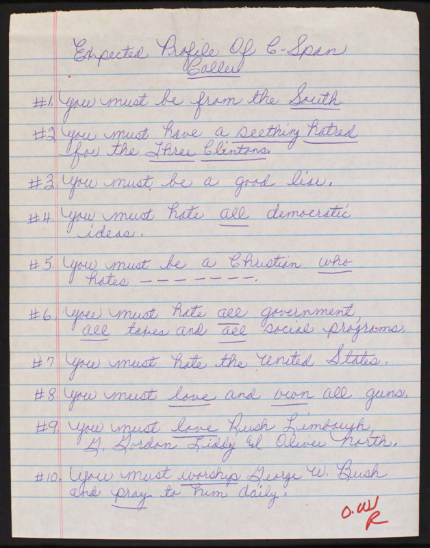 Offers disparaging list of "profile of a C-SPAN Caller."