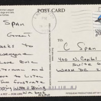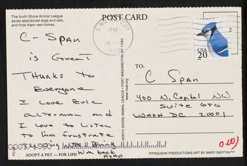 Expresses enjoyment of program with Eric Alterman and asks C-SPAN to invite him back.