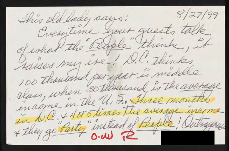 Letter to C-SPAN, 1999-08-31; 67502