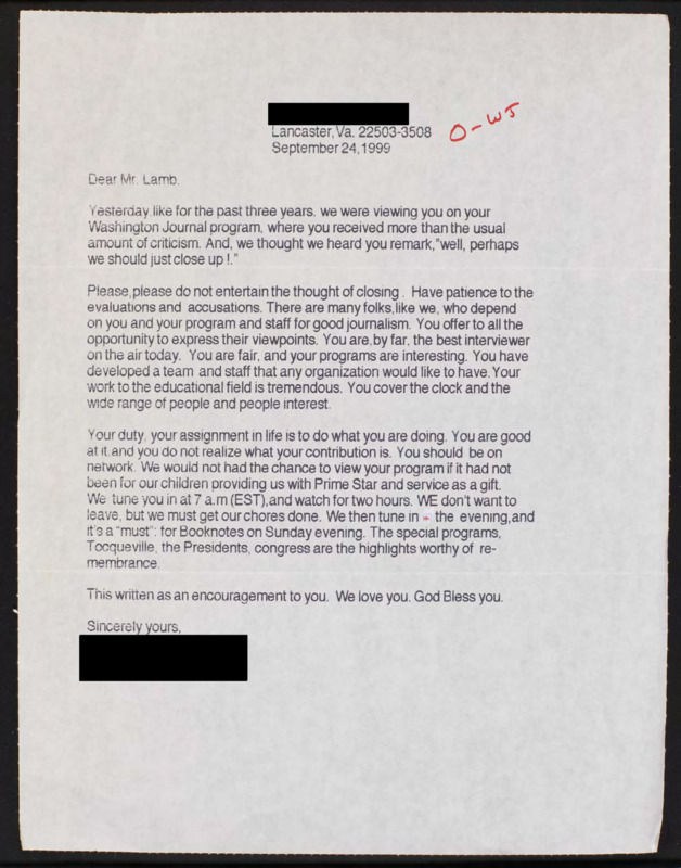 Letter to C-SPAN, 1999-09-24; 22503
