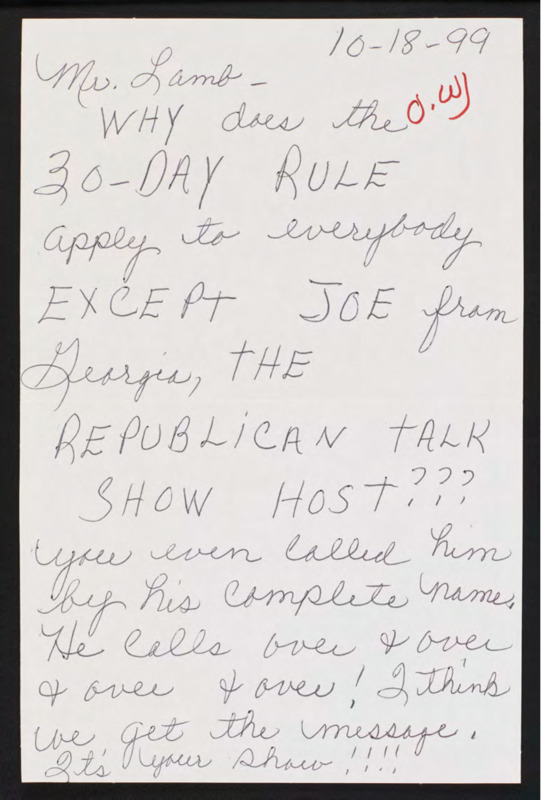 Letter to C-SPAN, 1999-10-18