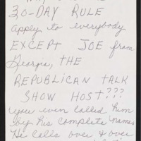 Complains that "Joe" from Georgia is violating the 30-day rule about calling in.