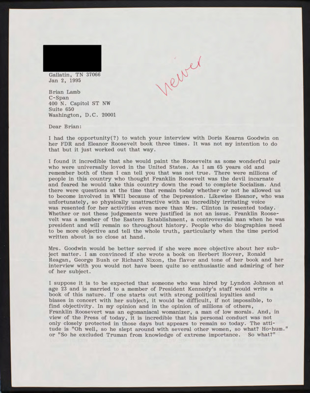 Letter to C-SPAN, 1995-01-02; 37066