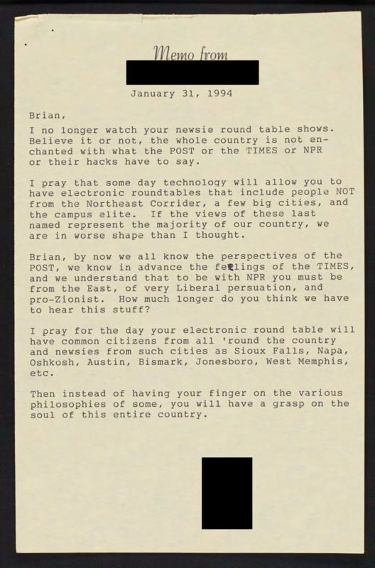 Letter to C-SPAN, 1994-01-31; 80503