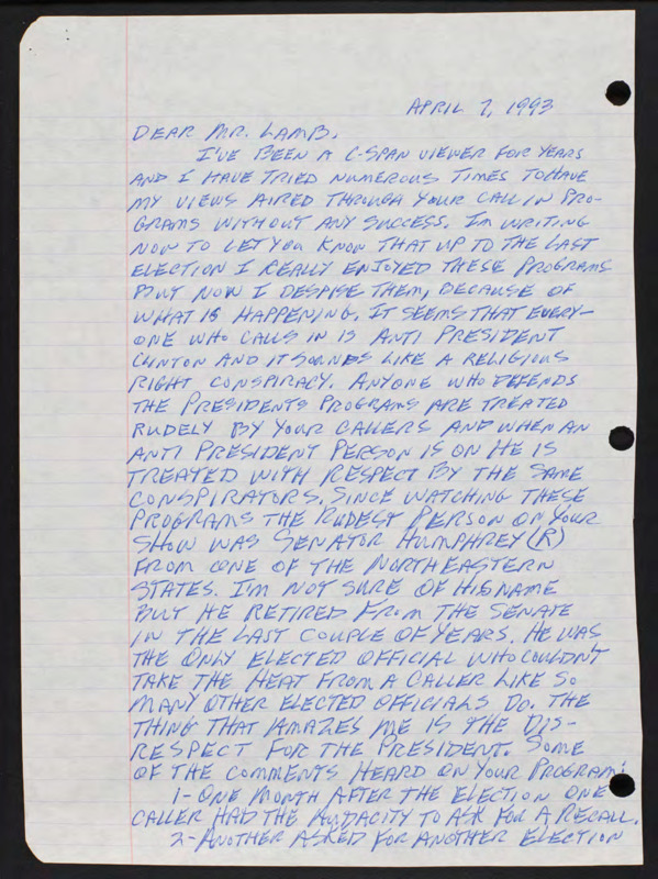 Expresses discontent with callers constantly bashing Clinton and his policies.