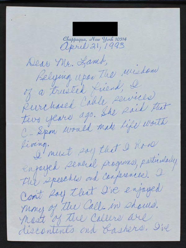 Letter to C-SPAN, 1993-04-21; 10514