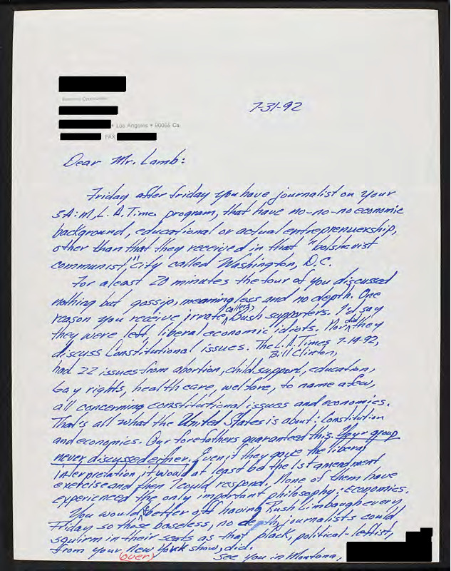 Complains that C-SPAN continuously invites uneducated journalists to comment on the economy; therefore, programs with journalists lack in-depth substance.