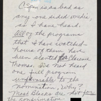 Expresses discontent with alleged C-SPAN bias toward Clarence Thomas.