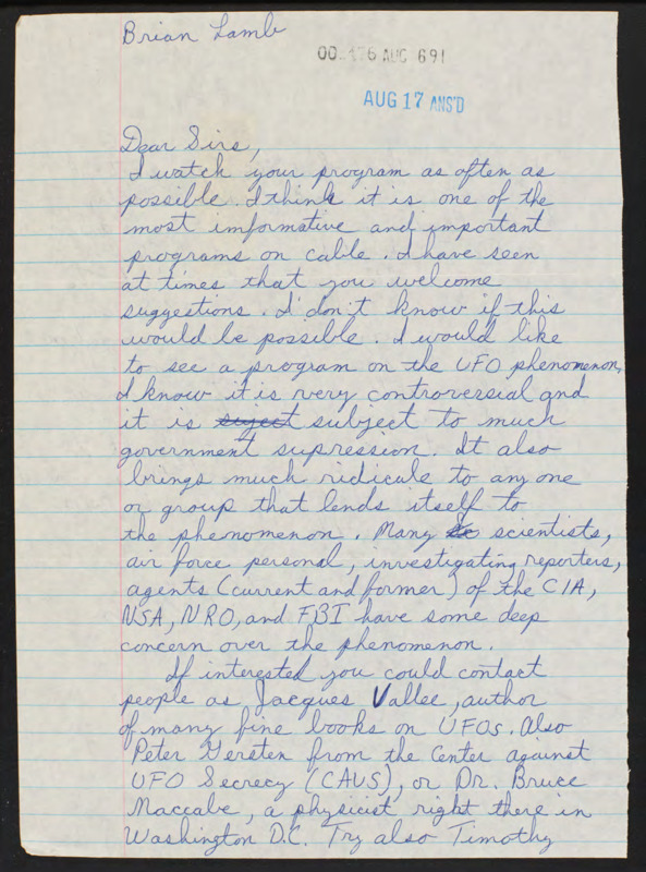 Letter to C-SPAN, 1991-08-03; 44077