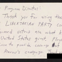 Expresses appreciation for coverage of Libertarian Conventions.
