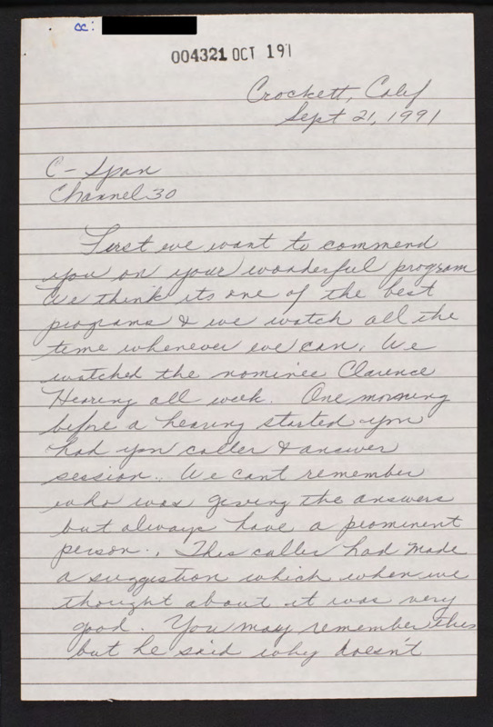 Expresses appreciation for Clarence Thomas coverage, suggests covering Supreme Court more.