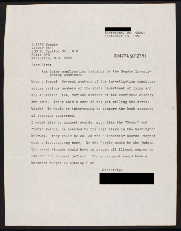 Letter to C-SPAN, 1991-09-19; 98245