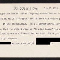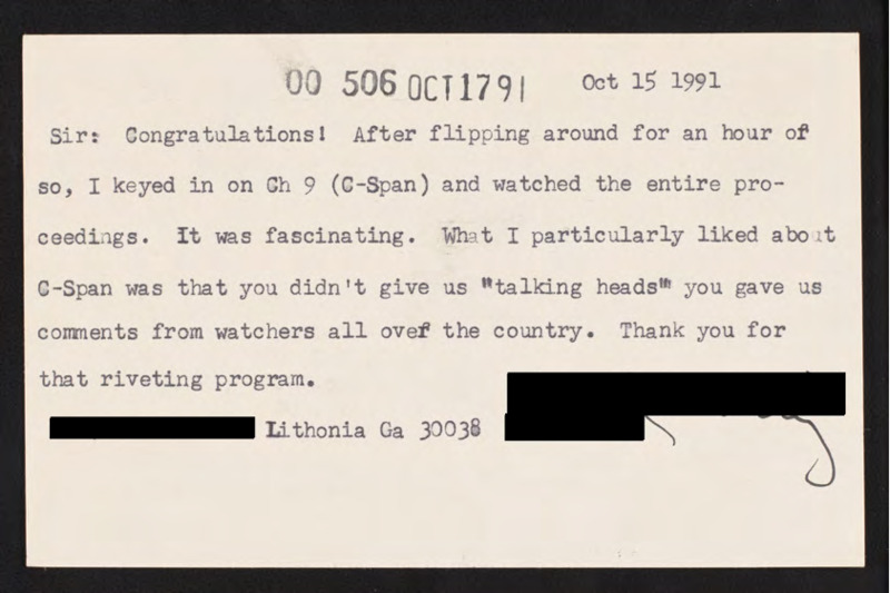 Letter to C-SPAN, 1991-10-15; 30038