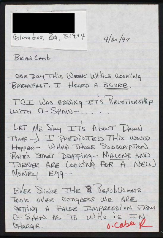 Gives opinion that C-SPAN is being cut from cable carriage because he feels they are biased against conservatives, then gives suggestions.