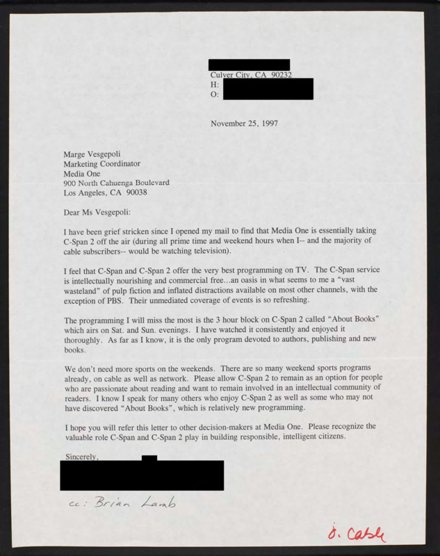 Letter to C-SPAN, 1997-11-25; 90232