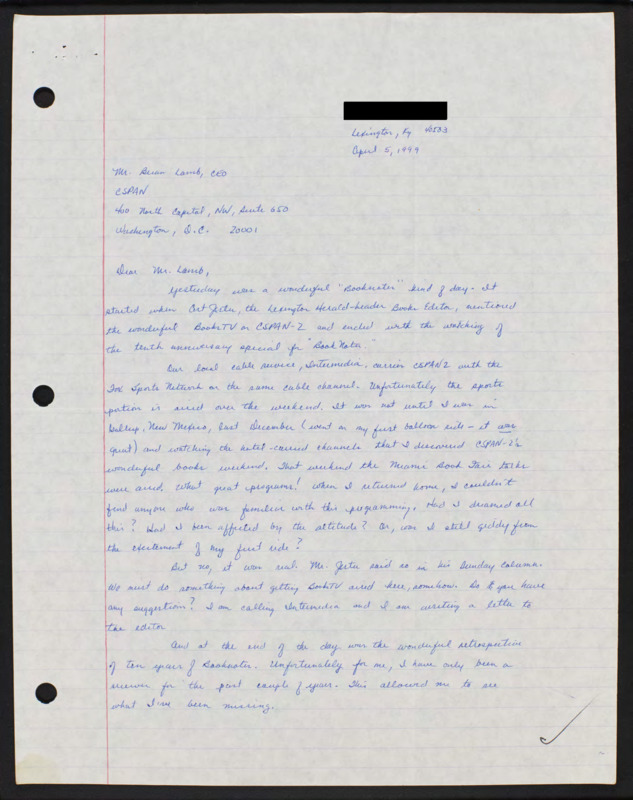 Letter to C-SPAN, 1999-04-05; 40503