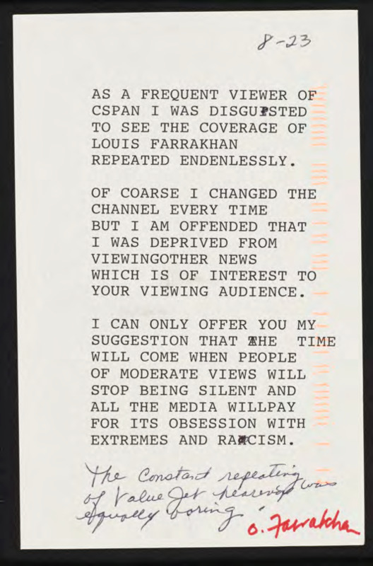 States they were disgusted to see Louis Farrakhan on C-SPAN.