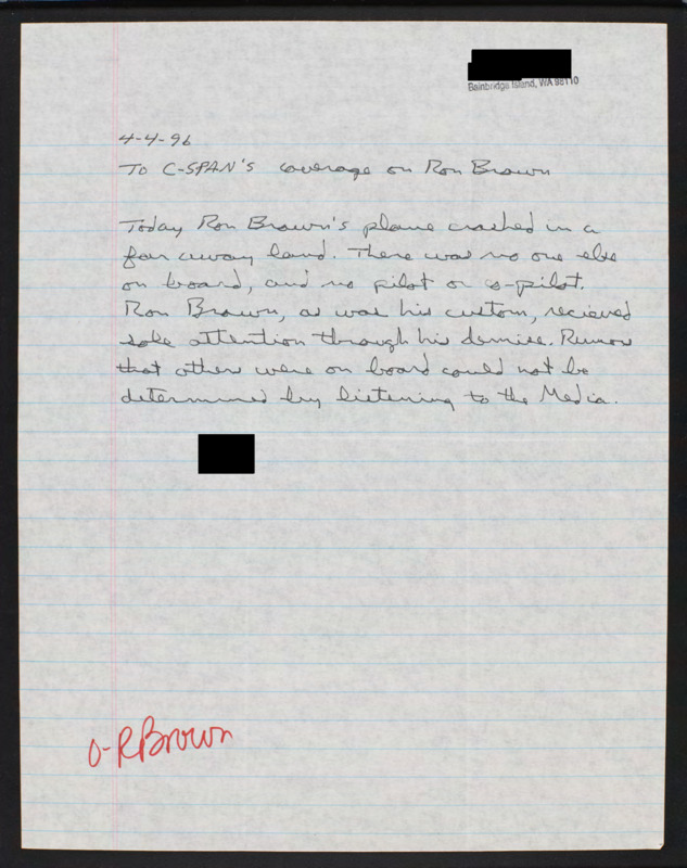 Letter to C-SPAN, 1996-04-04; 98110