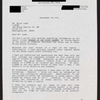 References a report on the plane crash of Ron Brown and offers personal information to support their assertion that they are not a conspiracy theorist; encloses the report and several other articles on the subject of Ron Brown's plane crash.