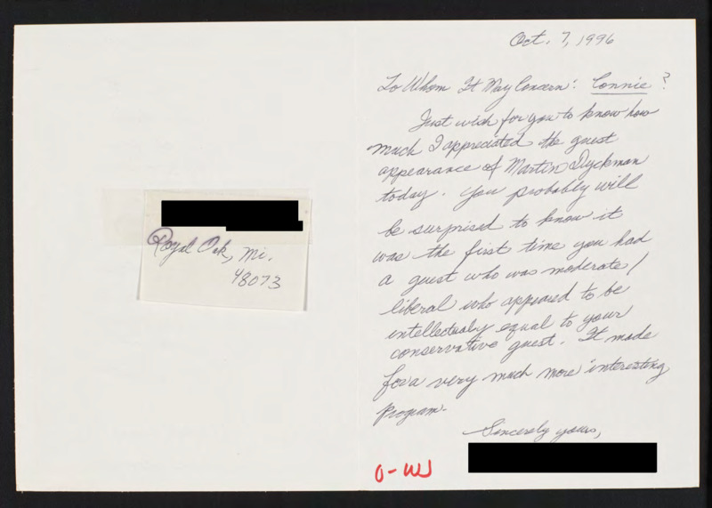Letter to C-SPAN, 1996-10-07; 48073