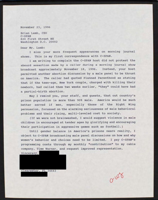 Letter to C-SPAN, 1996-11-23; 34643