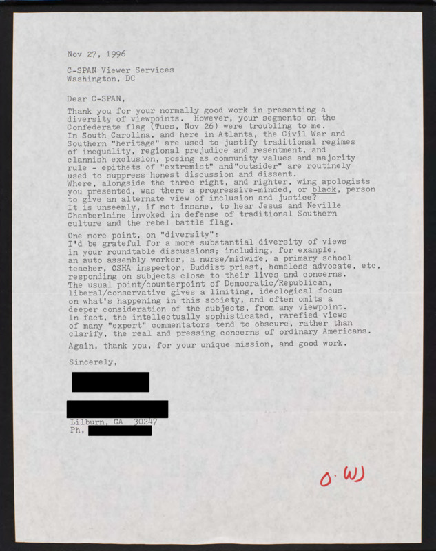 Letter to C-SPAN, 1996-11-27; 30247