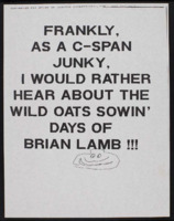 Praises Booknotes, states the House broadcasts can be really boring, and then suggests covering the topic of politicians using campaign money after retirement.