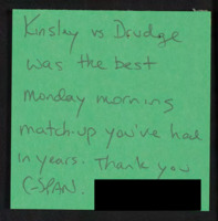 States belief that C-SPAN is getting more Bias, then encloses a fax on logging.