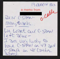 Encloses a letter to their local cable company advocating for C-SPAN, and asks that one New York Times reporter reach out to Ted Turner about the issue; includes other letters on the topic.