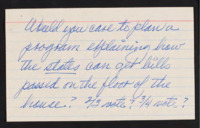 Expresses discontent over state of American politics, believes legitimate governors may help, suggests a program explaining how states pass a bill in Congress.