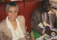 Glenette Tilley Turner of the Underground Railroad Advisory Committee (left) sits on a train with Russell Adams, the Chair of African-American Studies at Howard University. This photograph was taken while the C-SPAN crew was en route from Chicago, Illinois to Galesburg, Illinois while filming the Lincoln-Douglas Debates series.