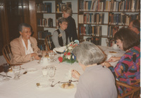 A view of many people sitting in a large room dining and talking. This photograph was taken as part of filming C-SPAN's Lincoln-Douglas Debates series in Galesburg, Illinois.