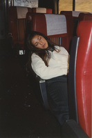 A person sitting on a train sleeps. This photograph was taken while the C-SPAN crew was en route from Chicago, Illinois to Galesburg, Illinois while filming the Lincoln-Douglas Debates series.