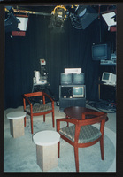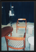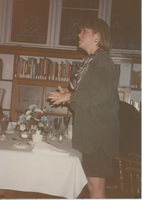 Susan Swain stands and speaks near a set table. This photograph was taken as part of filming C-SPAN's Lincoln-Douglas Debates series in Galesburg, Illinois.