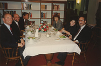 Several people and people are seated around a formal table set with salads. This photograph was taken as part of filming C-SPAN's Lincoln-Douglas Debates series in Galesburg, Illinois.