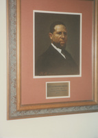 Close-up of a portrait of Hiram Rhodes Revels. This photograph was taken as part of filming C-SPAN's Lincoln-Douglas Debates series in Galesburg, Illinois.